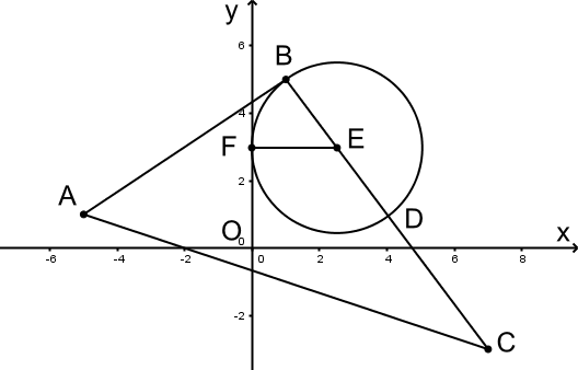 Viết phương trình BC. Gọi E thuộc BC theo tham số. Lập phương trình EF = EB từ đó tìm toạ độ E và D.