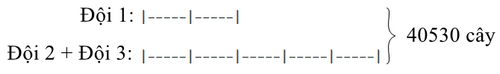 - Tính tổng số cây của ba đội trồng được.