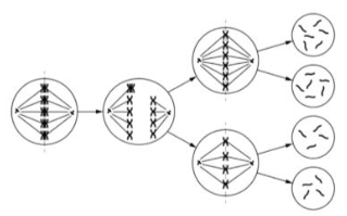 | b) Tế bào ban đầu có bộ nhiễm sắc thể lưỡng bội 2n = 10. | ||