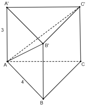 Cho lăng trụ đều $ABC \cdot A'B'C'$ có độ dài $AB = 4,AA' = 3$.