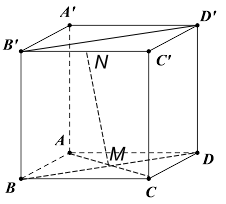 Cho hình lập phương $ABCD \cdot A'B'C'D'$ có độ dài các cạnh bằng 1. Gọi $M,N$ lần lượt là trung
