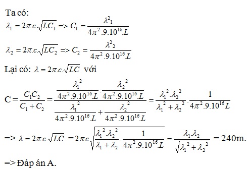 . Khi tụ C gồm tụ C1 mắc nối tiếp với tụ C2 thì bước sóng bắt được là:
