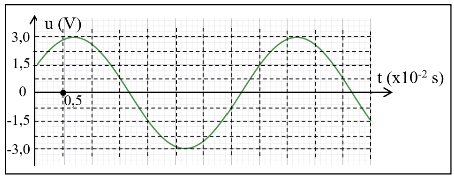 Một nhóm học sinh lớp 12 trường THPT chuyên Phan Bội Châu sử dụng cảm biến điện thế để đo điện áp xoay chiều đặt vào hai đầu điện trở $R = 12\Omega$ vẽ được đồ thị điện áp như hình bên.
