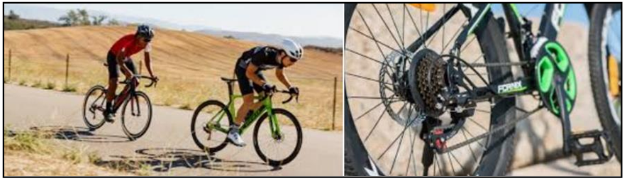 | c) Bán kính của đĩa gấp 3 lần bán kính nhỏ nhất của líp. Bánh xe có bán kính $30\text{~cm}$. Vận động viên có thể đạp vào pê-đan làm đĩa quay với $2,5\text{~vòng/s}$. Tốc độ tối đa của xe là $50,9\text{~km/h}$. | ||
