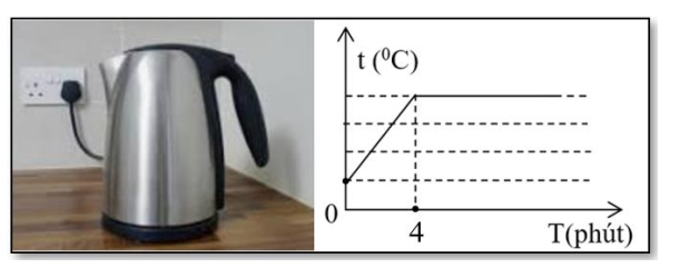 Một nhóm học sinh THPT dùng một ấm điện đun sôi 1kg nước ở áp suất khí quyển 105 Pa, dùng nhiệt kế đo nhiệt độ của nước theo thời gian thì thu được đồ thị như hình bên. Nhiệt dung riêng của nước là 4180 J/kgK. Cho rằng có 18,4 % nhiệt lượng của ấm tỏa ra môi trường. Coi sự bay hơi ở nhiệt độ thường của nước trong ấm là không đáng kể. Công suất của ấm là bao nhiêu kW? (kết quả lấy đến một con số sau dấu phẩy).
