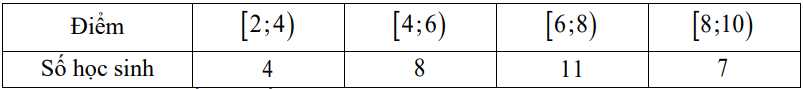 Thống kê điểm kiểm tra giữa kỳ 1 môn Toán của 30 học sinh lớp 12 Cl của một trường THPT được ghi lại ở bảng sau: