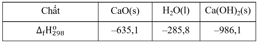 Nhiệt lượng tỏa ra khi đốt cháy CaO: Q1 = $\dfrac{m}{56}$.$\left| {\mathrm{\Delta}_{r}H_{298}^{o}} \right|$
