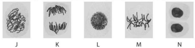 Hình sau cho thấy các bước khác nhau của nguyên phân. Trật tự đúng các bước