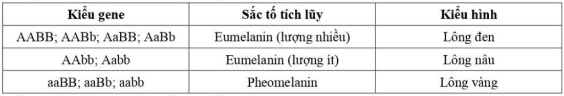 Ở chó Labrador, màu sắc lông do 2 locus gene phân li độc lập quy định. Những con chó của dòng này sẽ có thể có lông vàng, nâu hoặc đen tùy thuộc vào sự có mặt của các sắc tố. Sự tương tác giữa các gene quy định kiểu hình được mô tả ngắn gọn như sau: