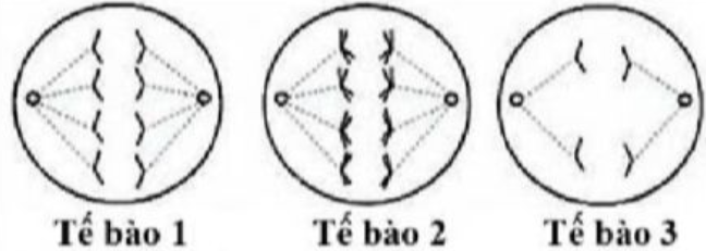 Hình sau mô tả quá trình phân bào của 3 tế bào. Phát biểu nào sau đây