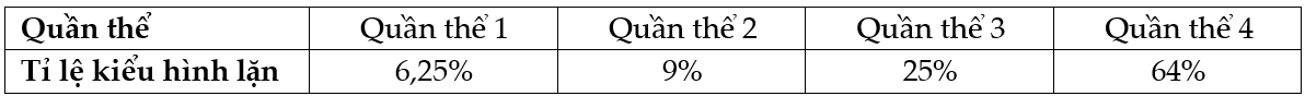 Ở một loài động vật ngẫu phối, xét một gene có hai allele, allele A trội hoàn toàn so với allele a. Xét bốn quần thể có số lượng cá thể tương đương đều đang ở trạng thái cân bằng di truyền về gene trên và có tỉ lệ kiểu hình lặn như sau: