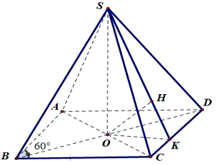 Cho hình chóp S.ABCD có đáy ABCD là hình thoi tâm O, cạnh a, $\widehat{ABC} = 60^{o}$. Biết rằng