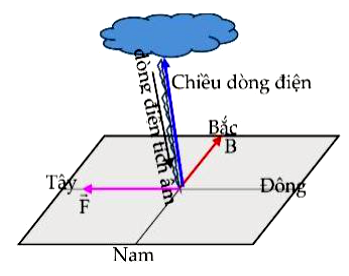 Khi sét đánh, có dòng điện tích âm chuyển động từ đám mây xuống mặt đất. Từ trường của Trái Đất hướng về phía Bắc. Tia sét bị từ trường Trái Đất làm lệch hướng theo hướng nào?