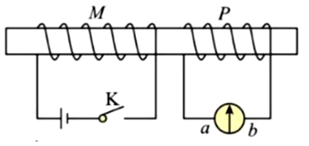 Như hình vẽ, cuộn dây M và cuộn dây P được quấn trên cùng một lõi sắt. Phát biểu nào sau