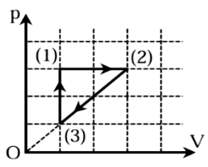 Một khối khí lí tưởng biến đổi trạng thái theo một chu trình ở hình bên. Biết thể tích và áp suất của khí ở trạng thái (1) là 1 lít và $3.10^{5}Pa$.