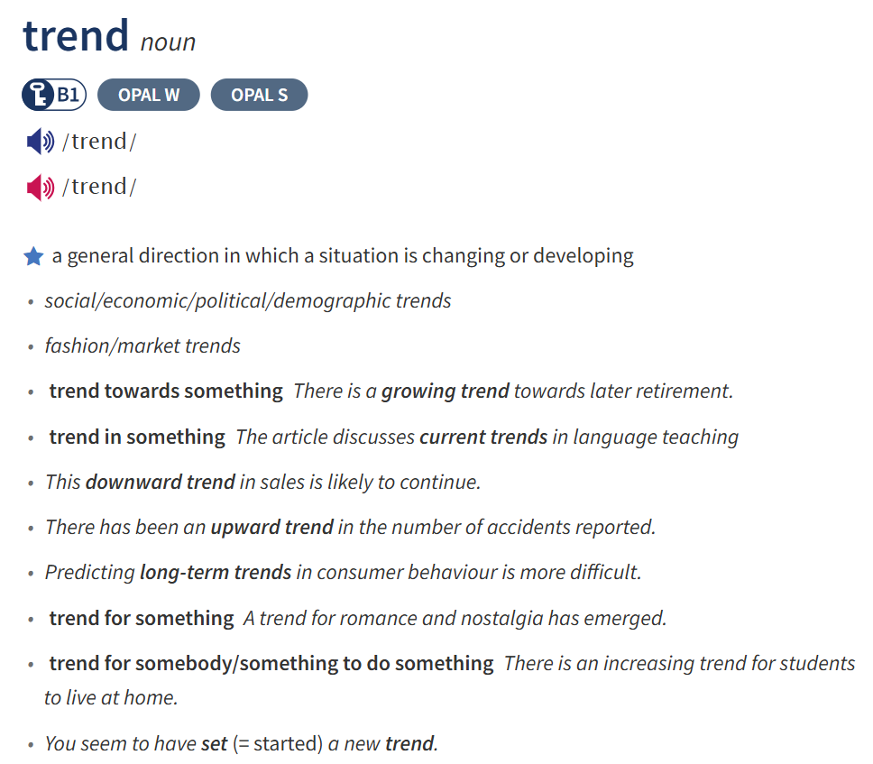 VI. Look at the entry of the word ‘trend’ in a dictionary. Use what you can get from the entry to complete the