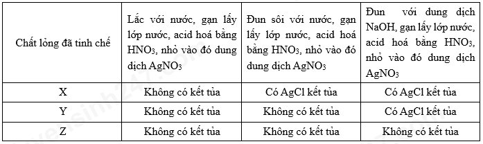 Có ba chất lỏng không màu đựng riêng biệt: phenyl chloride, propyl chloride, allyl chloride, được kí hiệu ngẫu nhiên là X, Y, Z. Người ta đã tiến hành thí nghiệm và kết quả của một số thí nghiệm như sau: