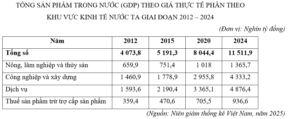 c) Dựa vào từ khóa: thích hợp nhất, quy mô GDP, giai đoạn 2012 – 2024. Từ đó lựa chọn dạng biểu đồ thích hợp nhất.