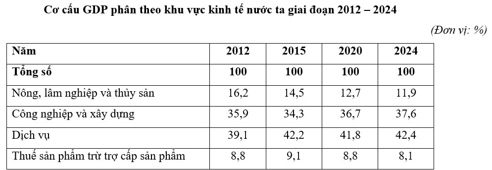 | b) Cơ cấu GDP của nước ta chuyển dịch tích cực theo hướng tăng tỉ trọng công nghiệp, dịch vụ. | ||