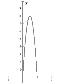 Một người chạy trong thời gian $1$ giờ, với vận tốc $v$ $\left( \text{km/h} \right)$ phụ thuộc vào thời gian $t\left( \text{h} \right)$ có đồ thị là một phần của parabol có đỉnh $I\left( {\dfrac{1}{2};8} \right)$ và trục đối xứng song song với trục tung như hình vẽ. Tính quãng đường $\text{S}$ người đó chạy được trong thời gian $45$ phút, kể từ khi bắt đầu chạy.