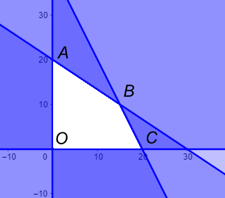 Đưa về bài toán tối ưu hệ bất phương trình bậc nhất hai ẩn, biểu diễn miền nghiệm và đạt cực đại tại một trong các đỉnh của đa giác miền nghiệm