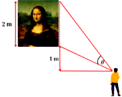 Trong một triển lãm về nghệ thuật, bức tranh vẽ Monalisa có chiều cao 2m được treo trên tường có mép dưới cao hơn tầm mắt người quan sát 1m (như hình vẽ).