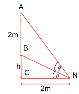 Gọi $\theta$là góc nhìn của người quan sát, $\beta$ là góc nghiêng của tia sáng truyền từ mép dưới bức ảnh tới mắt so với mặt đất, $\alpha = \theta + \beta$là góc nghiêng của tia sáng truyền từ mép trên bức ảnh tới so với mặt đất. Tính $\cot\theta$.