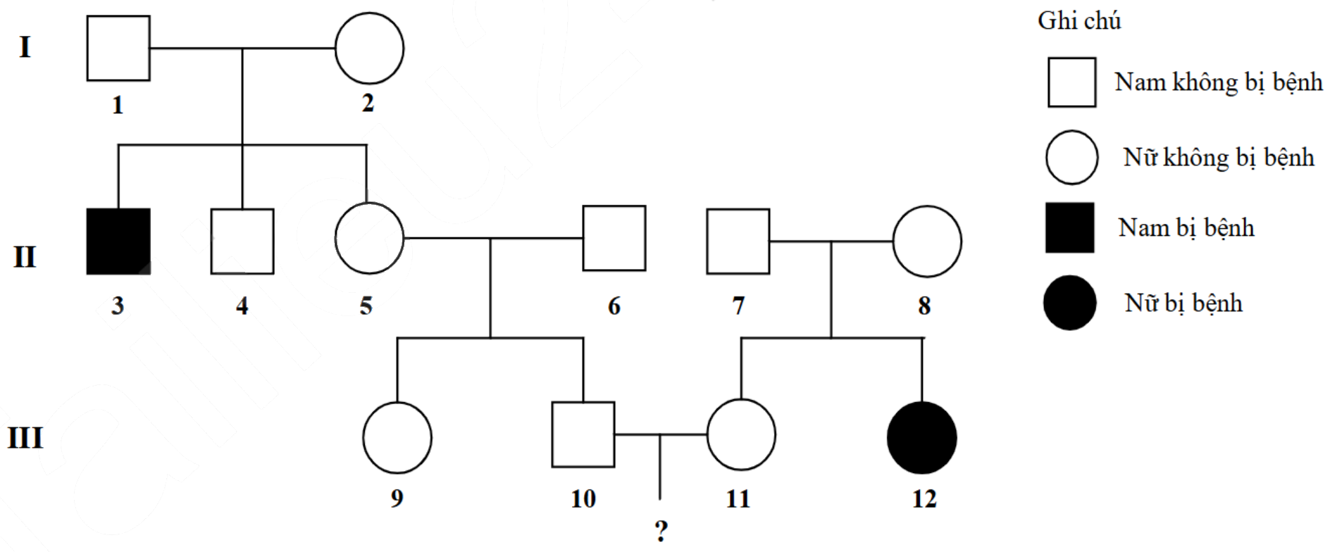 | d) Người (4), (5), (9), (10), (11) có thể có kiểu gene AA hoặc Aa vì chưa đủ cơ sở để xác định các kiểu gene của họ. |