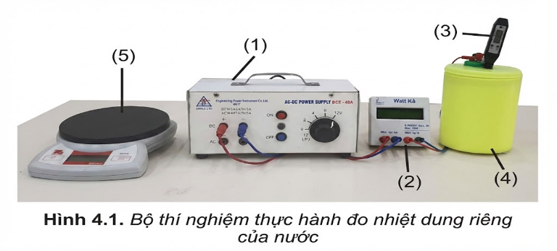 Sử dụng bộ thí nghiệm như hình bên dưới để đo nhiệt dung riêng của nước. Các thao tác cơ