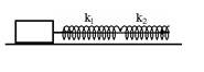 Trên mặt bàn nằm ngang có một vật đứng yên, khối lương m =1,8kg, được gắn với hai lò xo nối tiếp nhau, độ cứng lần lượt là k1=150N/m, k2=80N/m như hình vẽ. Tính công nhỏ nhất cần phải thực hiện để làm cho vật chuyển động khi đặt một lực vào đầu lò xo thứ 2 (phương của lực hợp với phương ngang một góc
