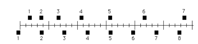 Vị trí của hai vật tại các thời điểm cách nhau liên tiếp 0,20 giây được biểu diễn bằng các ô vuông có đánh số trong hình dưới đây. Hai vật đang chuyển động theo chiều sang phải. Có khi nào hai vật có cùng tốc độ không?