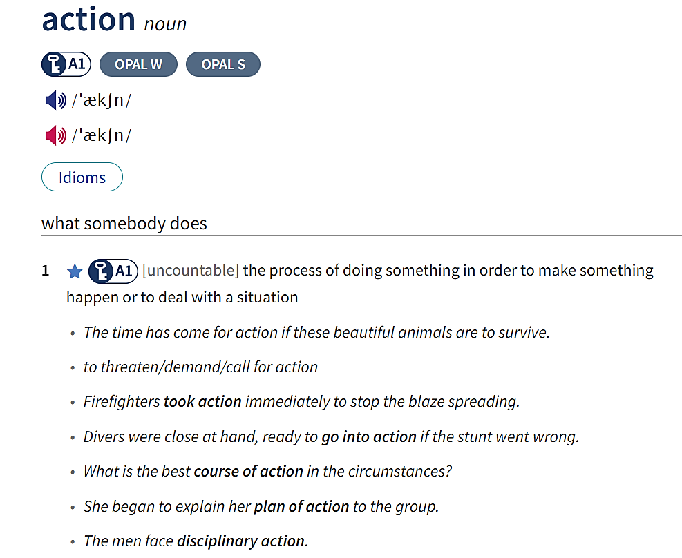 Hiểu nghĩa các cụm từ đi với “action” từ từ điển đã cho”