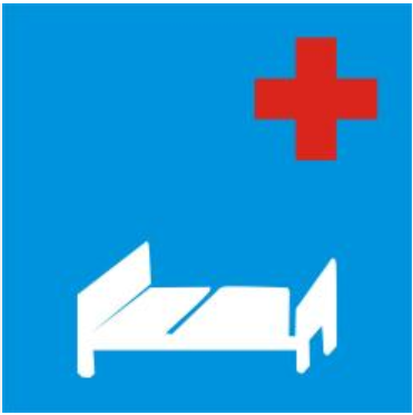 Hình ảnh biển báo có biểu tượng giường bệnh và dấu thập đỏ (biểu tượng y tế), đây là biển chỉ dẫn có cơ sở y tế gần đó, thường là trạm y tế hoặc bệnh viện.