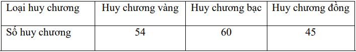 a) Tính tổng số lượng của từng loại huy chương (Vàng, Bạc, Đồng) qua các năm để xác định tần số và lập bảng thống kê.