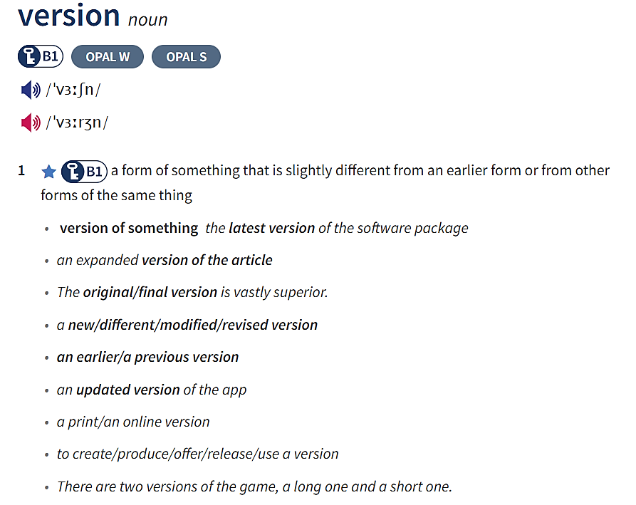 - Hiểu nghĩa các cụm từ đi với "version" từ từ điển đã cho: