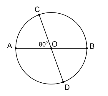 Cho AB và CD là hai đường kính của đường tròn $(\text{O})$. Biết rằng $\widehat{AOC} = 80^{{^\circ}}$.