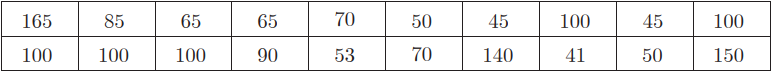 Điều tra về sự tiêu thụ điện năng (tính theo kwh) của một số gia đình ở một tổ dân phố,