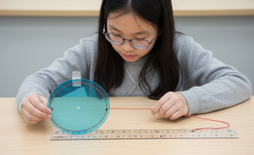 Bạn Ngân có một mảnh nhựa với bề mặt hình tròn bán kính 1 dm.