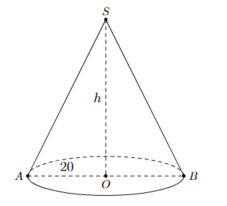 | a) Đường sinh $\text{SA} = \sqrt{h^{2} + 20^{2}}$ | ||