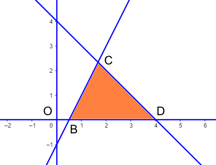 | d) Giá trị lớn nhất của biểu thức $P = x + 2y$ trên miền $(S)$ bằng $7$ |