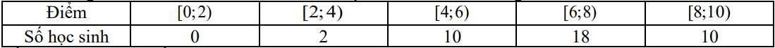 Bảng điểm bài kiểm tra môn Toán của lớp 10A được cho ở bảng sau: