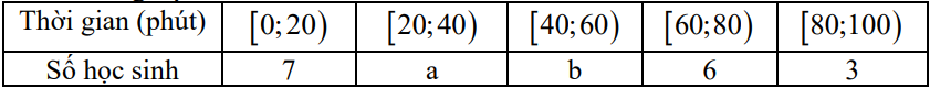 Khảo sát thời gian sử dụng điện thoại trong một ngày của mỗi học sinh trong lớp học có 42 học sinh thu được mẫu số liệu ghép nhóm sau: