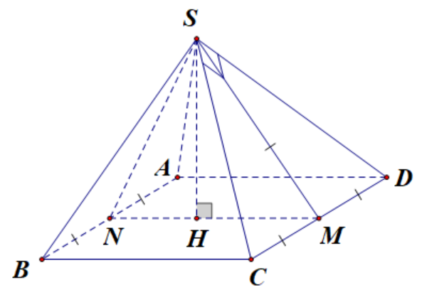 Gọi M, N lần lượt là trung điểm của CD, AB. Chứng minh SH là chiều cao của khối chóp với H là hình chiếu của S lên MN.
