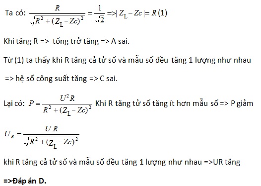 . Khi R = Ro hệ số công suất của mạch điện đang bằng