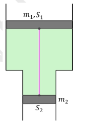 Một xi lanh đặt thẳng đứng có tiết diện không đều như hình vẽ. Giữa hai pittông có
