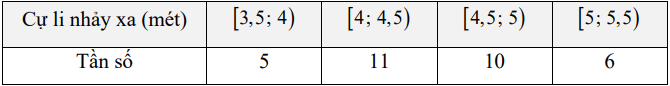 Bạn Hà ghi lại cự li nhảy xa của các bạn trong câu lạc bộ thể thao ở bảng tần số ghép nhóm sau (đơn vị: mét):