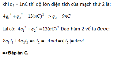 = 1nC thì độ lớn cường độ dòng điện trong mạch thứ nhất là