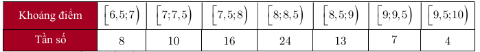Thống kê điểm trung bình môn Toán của một số học sinh lớp 12 được mẫu số liệu sau:Phương