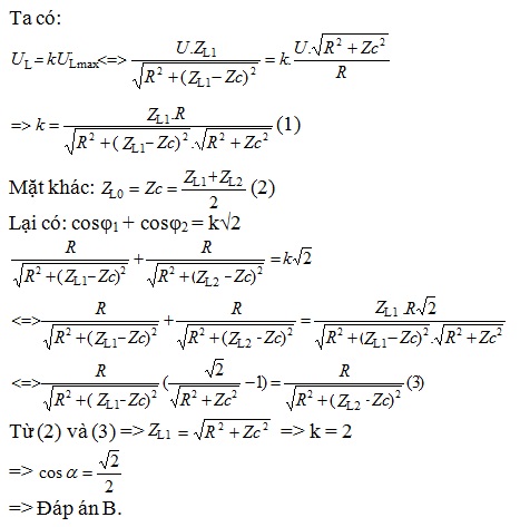 thì điện áp hiệu dụng giữa hai đầu cuộn cảm có giá trị như nhau là
