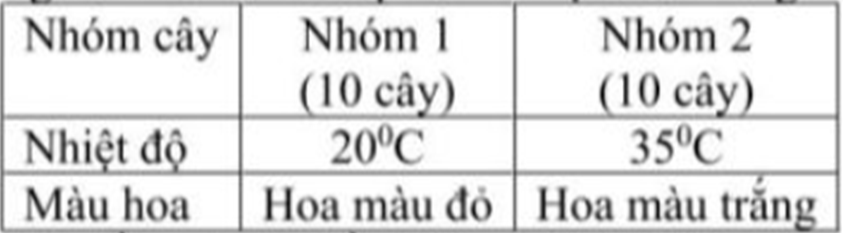 Một học sinh làm thí nghiệm trồng 20 cây hoa anh thảo (Primula sinensis) đều có kiểu gene AA ở các điều kiện nhiệt độ môi trường khác nhau. Kết quả thu được như bảng sau: